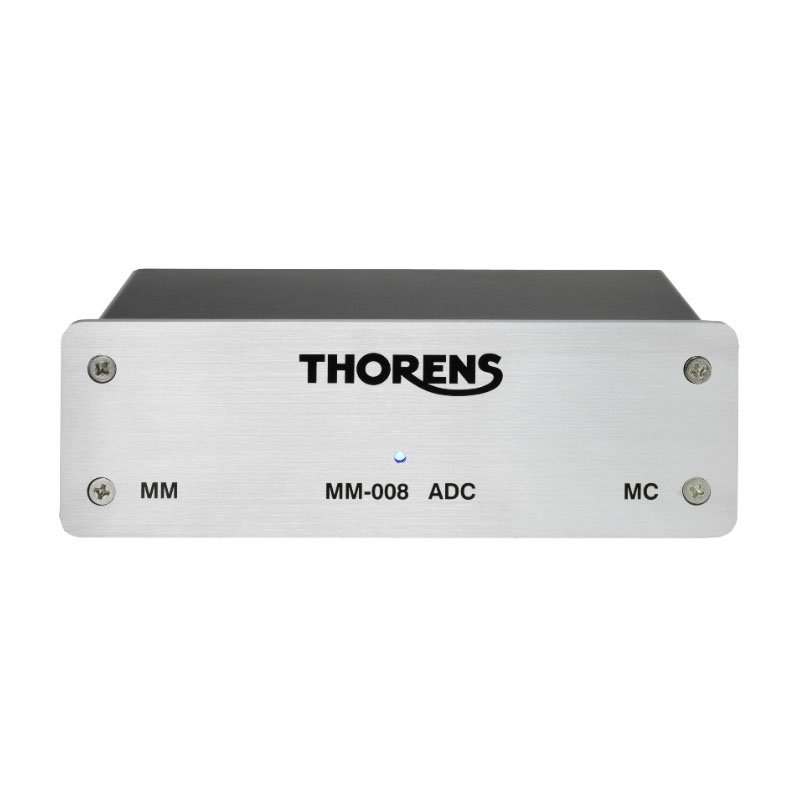 Фонокорректор Thorens MM 008 ADC обладает дополнительной функцией оцифровки аналоговых записей, которая в настоящее время является весьма востребованной среди меломанов. Аппарат изготовлен в металлическом корпусе с толстыми стенками, которые надежно защищают его схему от механических вибраций и электрических помех. Thorens MM 008 ADC отличается высоким качеством изготовления и очень прост в использовании. Благодаря сравнительно небольшим размером этот аппарат можно установить поблизости от проигрывателя винила, что позволит использовать соединительные кабели небольшой длины. Работает Thorens MM 008 ADC от внешнего источника постоянного напряжения.
