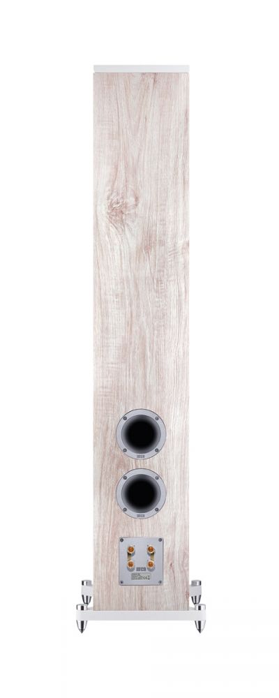 Несмотря на свой небольшой размер, Aurora 700 имея чувствительность 92 дБ, не сильно отстает от флагмана серии, как по звуковому давлению, так и по своим басовым возможностям. Имеет два 170 мм вуфера и один 170 мм мидрейнж с диффузорами из крафт бумаги HECO, и демонстрирует максимальную естественность, тембральную точность и высокую скорость в совокупности с масштабным басом. Новейший твитер Fluktus от HECO обеспечивает идеальные дисперсионные свойства благодаря 28-миллиметровому куполу из шелка и специально рассчитанной многоволновой передней панели. Эти особенности обеспечивают высокое разрешение с точной передачей микродинамики и гарантируют общую когерентную звуковую сцену с точной локализацией и фокусировкой звуковых образов. Корпус имеет повышенную жесткость, усилен внутренними перегородками для исключения призвуков и резонансов и устанавливается на твердый алюминиевый подиум на регулируемых по высоте массивных маятниковых металлических шипах. Для лучшей совместимости с интерьером, Aurora 700 доступны как в темной отделке "ebony black" с черным грилем, так и в светлой "ivory white" с серым грилем, которые крепятся к фронтальным панелям с помощью незаметных интегрированных магнитов, чтобы не ухудшать общий внешний вид. Фронтальная и верхняя панели покрыты матовым лаком под шелк.