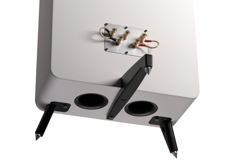 Конструкция основания Heco Direkt Premium сама по себе является инженерным подвигом, представляя собой полностью металлическую конструкцию с трехточечной системой подшипников для идеального распределения веса и абсолютной устойчивости. Кроме того, АС поставляется со сменными металлическими или резиновыми шипами, что позволяет ей адаптироваться к различным типам пола, сохраняя при этом устойчивое основание без резонанса.