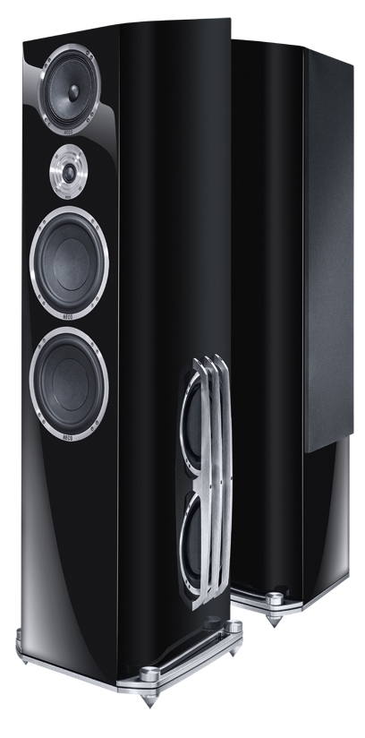 High End флагман от HECO. 3-полосная АС с пассивными радиаторами. Для передачи ВЧ диапазона используется новейший твитер Fluktus 2-го поколения. Басовые диффузоры HECO La Diva также сделаны из крафт-бумаги HECO. Два 8” вуфера с 32-мм звуковыми катушками, работающими синхронно, обеспечивают отличное воспроизведение НЧ регистра.