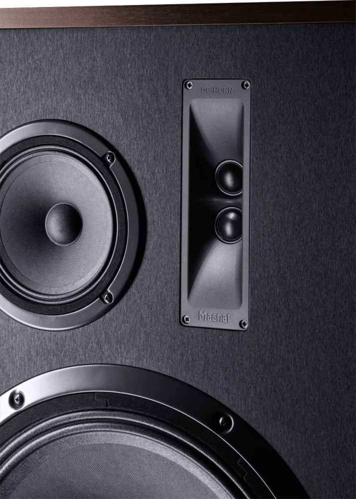 - Двойной рупорный компрессионный динамик ВЧ с двумя 25 мм, купольными мембранами обеспечивает великолепный динамичный и естественный звук