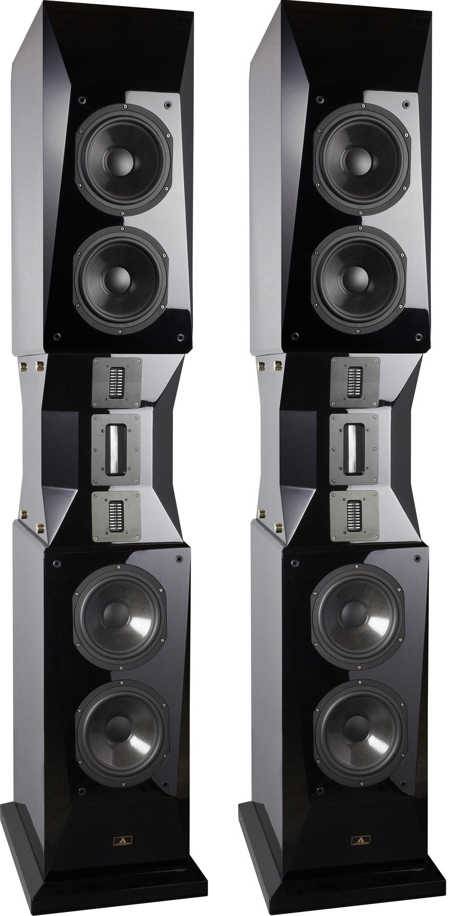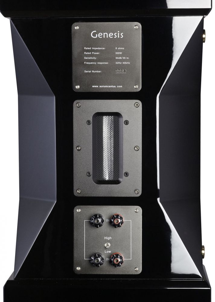 Напольная акустика Aurum Cantus Genesis — это флагман Aurum Cantus. 4.5 — полосная конструкция. 3 ВЧ твитера на передней панели, установленные по технологии диапполито, 1 ВЧ твитер на тыловой стороне корпуса, расположенный над высококачественными клеммами WBT. Высокая чувствительность в 94 дБ позволяет использовать Aurum Cantus Genesis с практически любым усилителем.