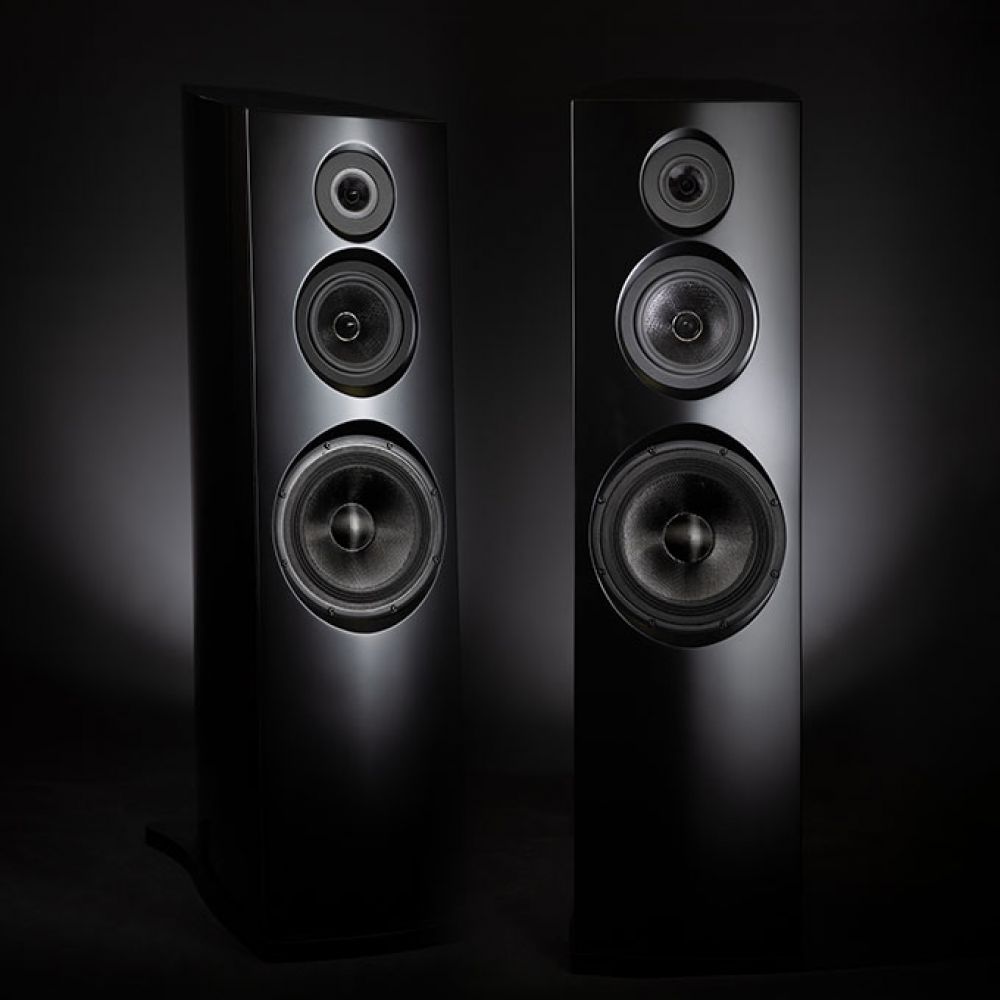 Флагманская 3-х полосная, напольная акустическая система с уникальным высокочастотным кевларовым динамиком размером 70 мм, кевларовым среднечастотным динамиком 170 мм построенном на мощнейшем магнитном моторе из сплава TiCoNAl и низкочастотным, короткоходным карбоновом 250мм динамиками. Корпус выполнен без параллельных стенок из высокопрочного МДФ, толщиной от 25 до 40 мм. Чувствительность 90,5 дБ. Экстремально ровный воспроизводимый частотный диапазон простирается от 30 Гц до 30кГц. Сопротивление 8 Ом (минимум 5 Ом), кроссовер делит полосы на 300 Гц и 3000 Гц, номинальная мощность 300 Вт, размеры: высота 1300 мм (с подставкой 1350 мм), ширина 330 мм, глубина 600 мм, вес одной колонки 100 кг. Виды отделок: Уникальная двухуровневая глубокая полировка - передняя панель черный полумат, полировка боковин корпуса - глубокий черный глянец; Также доступны эксклюзивные виды отделки: покрытие металлом и цветной градиент.