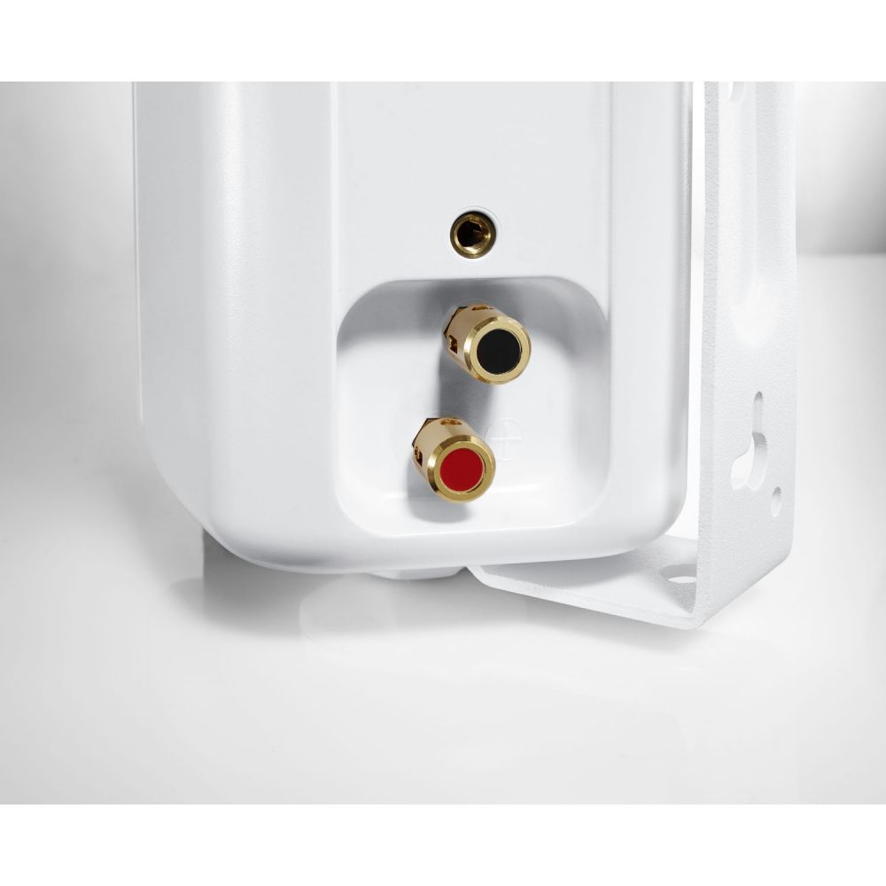 Перед нами универсальные системы, способные работать как в помещении, так и на открытом воздухе. Конструкция модели Pro X.3 двухполосная, а в качестве акустического оформления используется закрытый корпус. К слову, последний выполнен из прорезиненного пластика и имеет все необходимые степени защиты от влаги и других внешних воздействий. Диффузор закреплён на эластичном подвесе особой формы, допускающем значительные смещения — этим достигается солидная глубина нижнего диапазона. У твитера мягкий купол дюймового калибра, мощная магнитная система и увеличенная звуковая катушка. По заверениям разработчиков, это обеспечивает не только расширенную полосу (до 26 кГц), но и максимально точное звучание в основном слышимом спектре. Как и большинство участников теста, Canton Pro X.3 комплектуются монтажным кронштейном-скобой, позволяющим закрепить АС на любой плоской поверхности.