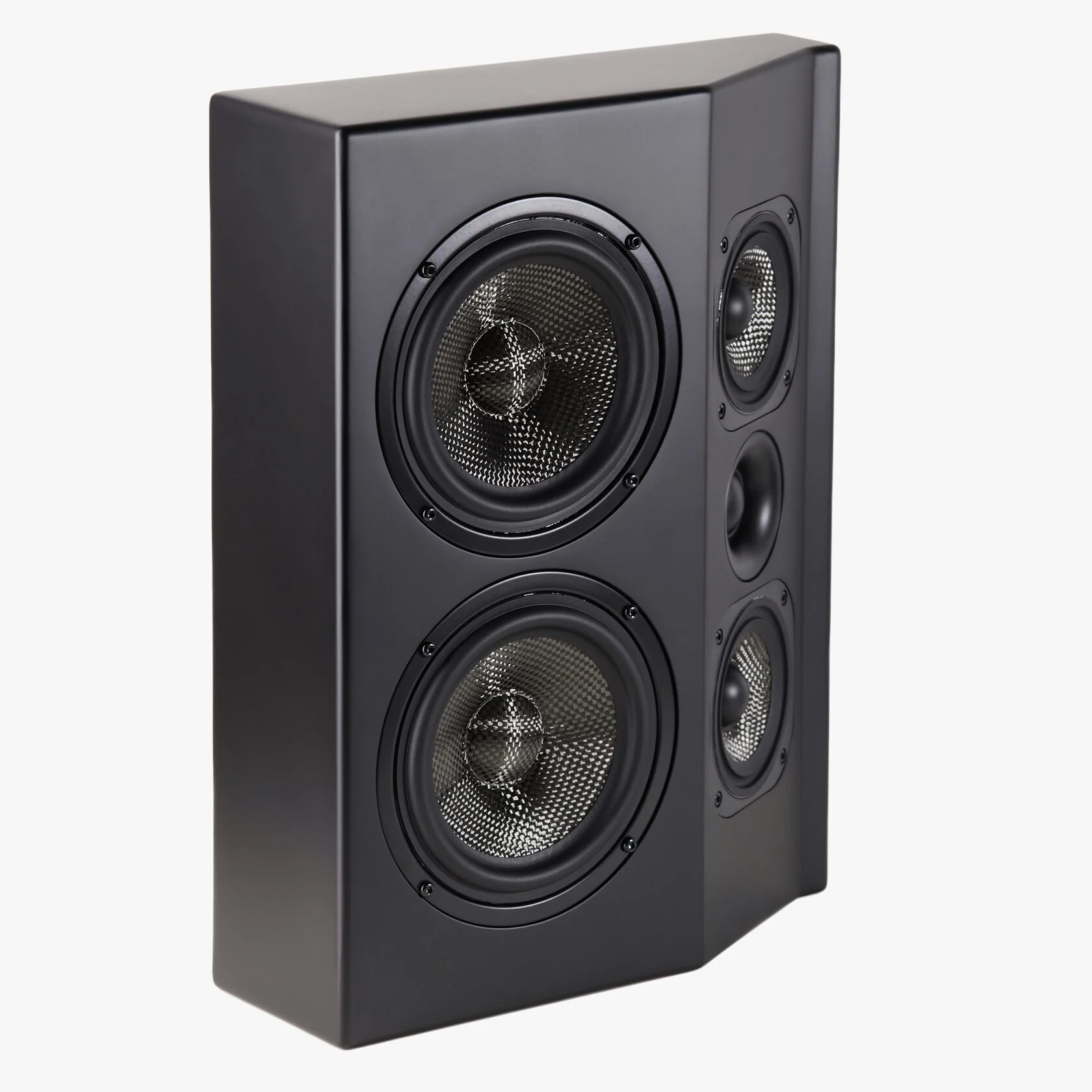 Небольшая по габаритам трехполосная АС располагает корпусом сложной формы для прекрасной организации звукового пространства.