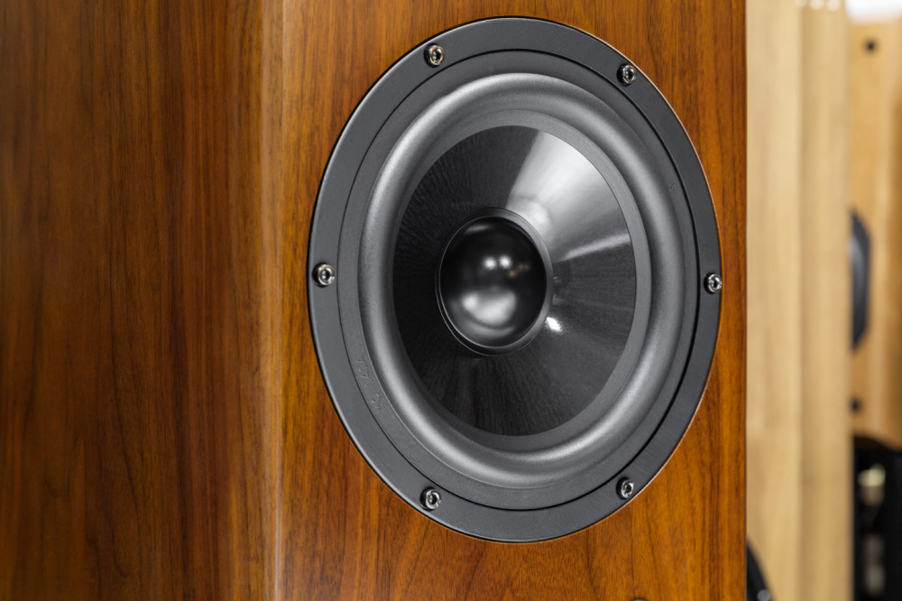 В акустике используются, ленточный твитер с алюминиевой мембраной и 165-мм СЧ/НЧ-динамик с диффузором из композитного материала. Композит имеет полимерную основу с наполнением слюдой и волокнами графита. Диффузор установлен на мягком резиновом подвесе и у него довольно большой рабочий ход. Корзина динамика литая, алюминиевая. Для лучшего контроля и увеличения максимальной мощности он оснащен большим магнитом диаметром 120 мм и весьма крупной (для динамика такого калибра) 35-мм звуковой катушкой, намотанной плоским проводом.