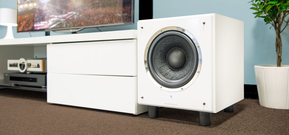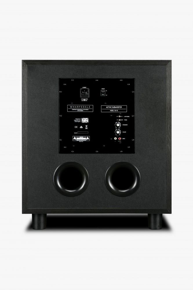 Активный сабвуфер Wharfedale Diamond SW-15 с фазоивертером направленным вниз, с возможностью инверсии фазы сигнала и регулировкой частоты кроссовера.