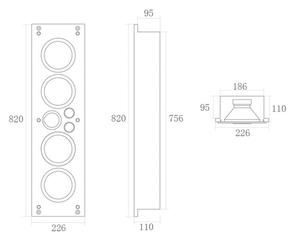 Используются один 1-дюймовый твитер с двойной магнитной системой с куполом из шелка и четыре 5,25-дюймовых СЧ-динамика с конусной диафрагмой из бумаги с специальным глянцевым напылением , с чувствительностью до 90 дБ, что позволяет акустике быть легкой нагрузкой для многоканального усилителя.