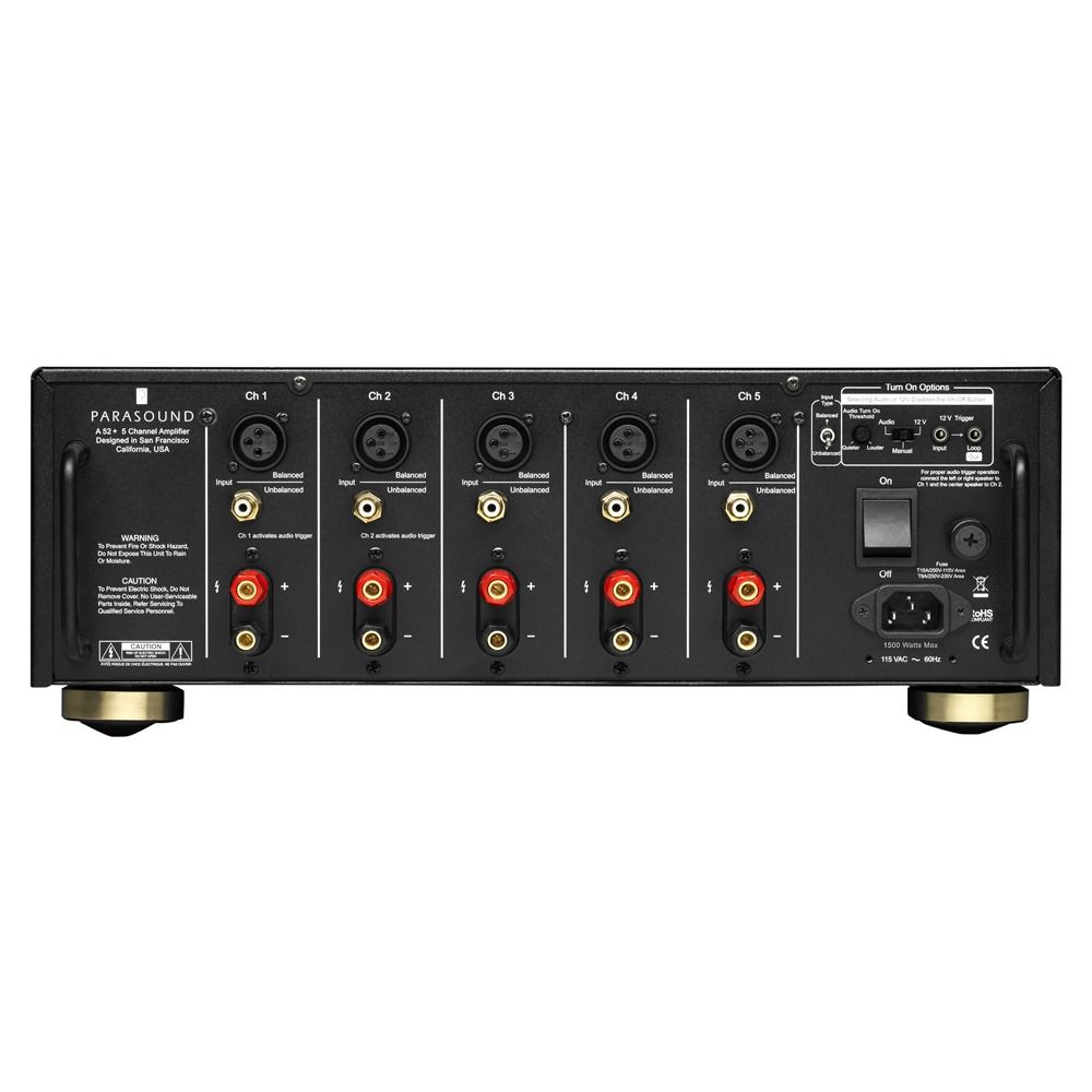 Parasound представила новую версию усилителя A 52 на CEDIA 2017. Новинка Halo A 52+ выполнена в обновленном дизайне Halo, улучшенной схемотехникой и возросшей до 180 ватт мощностью при 8 Ом или 255 ватт при 4 Ом. Помимо прочего, A 52+ получил увеличенный высококлассный тороидальный трансформатор.