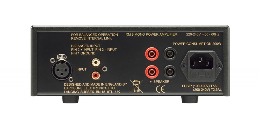 Моноблок Exposure XM9 выдает 2 х 80 Вт на 8 Ом, имеет балансный и небалансный линейные входы (выбираемые перемычкой на плате), а также связь каскадов по постоянному току. Защита от перегрузки по току реализована на отдельной электронной схеме, которая не вносит помех в основной аудио тракт. Высококачественные колоночные клеммы готовы к подключению би-ваерингом.
