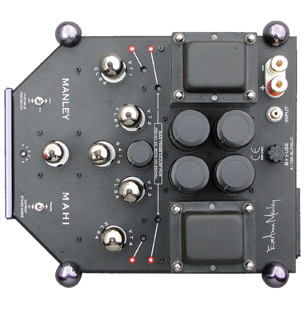 Усилитель мощности Manley Mahi — моноблоки, отличающиеся корпусом «мини-Snapper» и схемными решениями Stingray с определенными доработками. Так, значительно умощнен блок питания: запасаемая энергия в цепи анодного питания равна 180 Дж, что в первую очередь ощущается в мощных и открытых басах. Излюбленные выходные мини-пентоды Manley — EL84/6BQ7 — обеспечивают живое и музыкальное звучание во всем диапазоне и музыкальность. «Младшие братья» EL34 издавна славятся в кругах аудиофилов особой деликатностью звука, высокой надежностью и долговечностью.