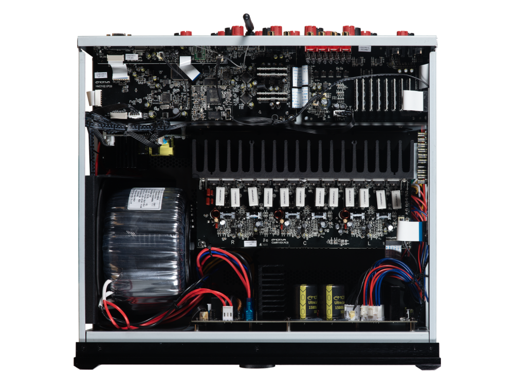 В MR1 использованы усилители класса A/B аудиофильского уровня с топологией усовершенствованного блока питания для оптимальной эффективности. Модель также оснащена аналоговыми линейными выходами предусилителя. Это позволяет использовать MR1 в комбинации с пассивными акустическими системами и внешними усилителями.