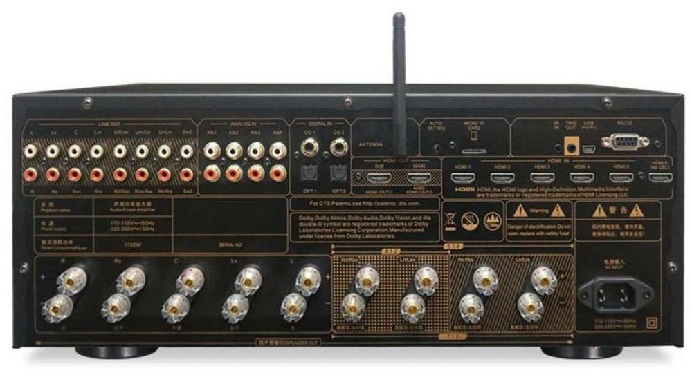 7.3.6 / 9.3.4 -Канальный 4K / HDR / Dolby Vision / Dolby Atmos ™ и DTS:X AV-ресивер. 9x120 Вт@8Ом. Форматы: Dolby Atmos ™, DTS:X, Dolby Digital, Dolby TrueHD, Dolby Pro Logic IIx/z, Dolby Vision, DTS, DTS HD Master Audio, DTS Neo:6, S/PDIF, Многоканальный цифровой звук PCM. Видео входы: 6x HDMI (2.1, HDCP 2.2, 4K, HDR 10, Dolby Vision). Видео выходы: 2x HDMI (2.1, HDCP 2.2, 4K, HDR 10, Dolby Vision, eARC). Аудио входы: 4x RCA, 2x коаксиальный S / PDIF, 2x оптический Toslink, 1х USB. Автонастройка: с помощью микрофона (опционально). Bluetooth. Встроенный проигрыватель аудио файлов. Поддержка FLAC, APE, WAV, WMA, MP3. Управление с мобильных устройств. Дополнительные входы и выходы: 1x ИК-Вход, 1x Вход RS-232, 1x Триггерный выход. Размеры (ШхВхГ): 431 x 406 x 257 мм. Вес: 15.8 кг.