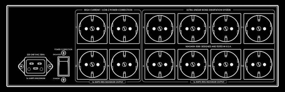 Фильтр-кондиционер изготовлен в полноразмерном металлическом корпусе с толстой алюминиевой панелью. Очень качественная отделка и привлекательный дизайн, характерный для Hi-Fi-моделей премиального класса, позволят устройству органично вписаться в самую высококлассную AV-систему. Всего в AudioQuest NIAGARA 5000EU имеется 12 электрических розеток, что позволяет подключить самую сложный комплект аудио/видео техники. Четыре из них рассчитано на наиболее мощную нагрузку, а еще 8 – на обычную.