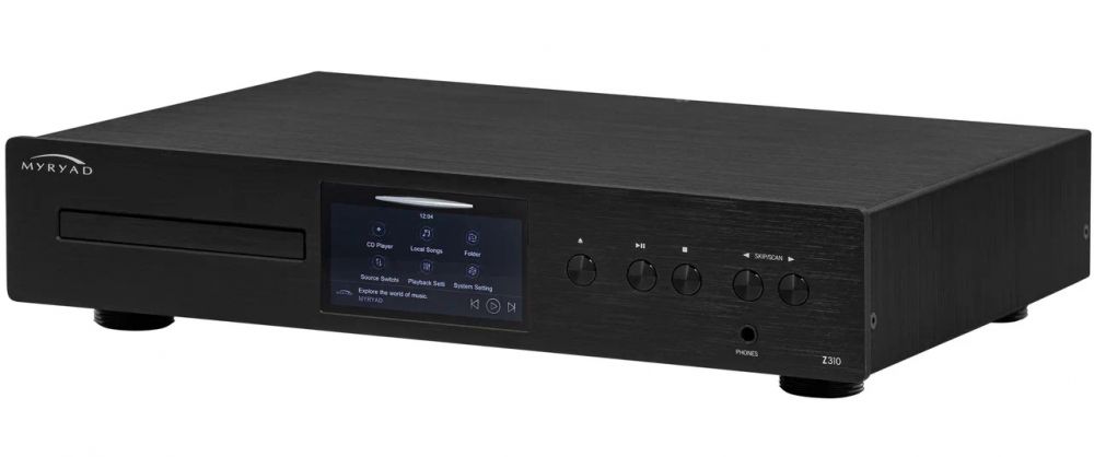Компания Myryad выпустила современный CD плеер / цифровой медиа плеер Z310. При производстве данной модели использовались аудиофильские комплектующие: чип ЦАП — ESS ES9219C, чипы Bluetooth 5.0, конденсаторы NICHICON, аудиотранзисторы Sanken. Плеер имеет высококачественный аналоговый XLR выход и классический RCA. Так же Z310 обеспечен всеми необходимыми цифровыми выходами – оптическим и коаксиальным, а для желающих воспроизводить свой контент через USB – можно использовать встроенный ЦАП с замечательными характеристиками 32бит/768кГц и DSD512 – USB type B или USB type A – для подключения флеш – накопителя. На борту проигрывателя имеется современный Bluetooth 5.0 для передачи HiRes Audio без потерь. Плеер оборудован большим цветным сенсорным экраном. Для владельцев наушников в Z310 имеется выход 6,35 мм.