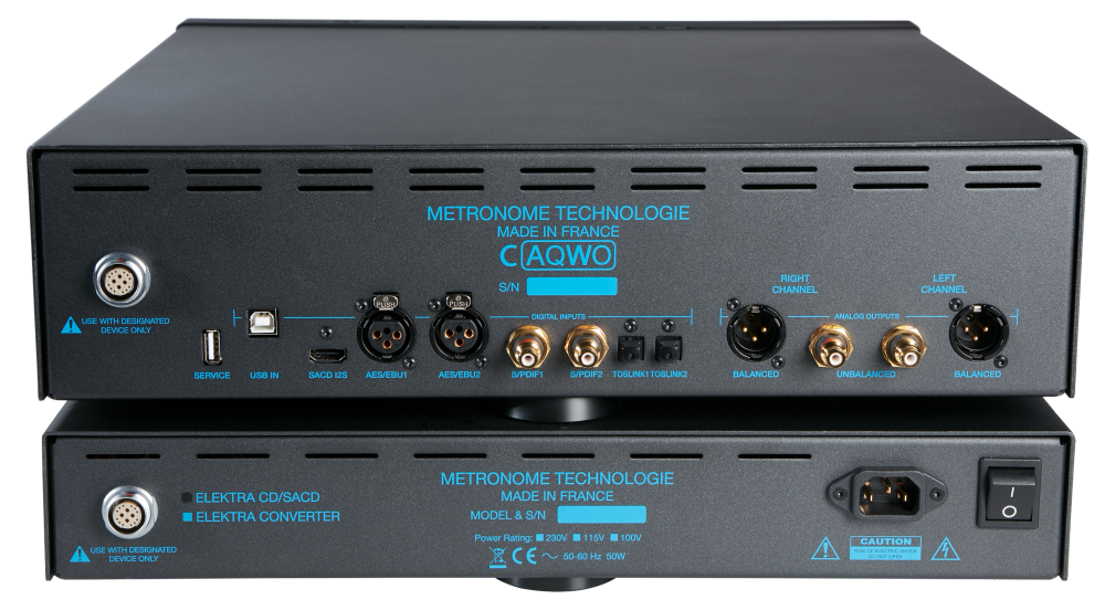Название AQWO было создано Metronome от древнегреческого глагола akouo, что означает «слушать», «хорошо слышать». Линия AQWO включает в себя три устройства, среди которых полная гибридная модель SACD/CD которая называется AQWO, а также раздельные SACD/CD транспорт t|AQWO и гибридный конвертер c|AQWO. Отметим что транспорт и конвертер имеют выносные блоки питания в отдельных корпусах. Инженеры Metronome традиционно уделяют большое значение питанию своих приборов — так например в AQWO используются 10 независимых линий регулирования напряжения, в транспорте t|AQWO 3 тороидальных трансформатора и 7 независимых линий регулирования напряжения, а в конвертере c|AQWO — 4 тороидальных трансформатора и 11 независимых линий регулирования напряжения. Как и все преобразователи Metronome, AQWO декодирует PCM и DSD до 512 (x8). Все устройства линии AQWO получили абсолютно новые корпуса с великолепным заказным дизайном и тщательно подобранными материалами — в данном случае это дорогостоящий алюминий.