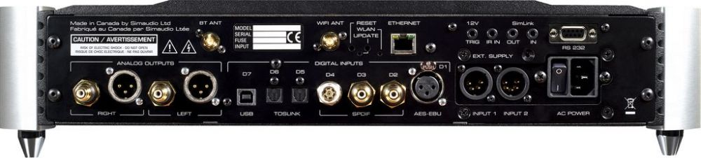 В устройстве имеется порт RS-232 для обновления встроенного ПО, триггерный выход 12 В для управления партнерскими кормпонентами и ИК-вход пульта ДУ. Для использования Simaudio Moon 680D в качестве внешнего компьютерного ЦАП по USB с компьютером под управлением Windows, необходимо будет скачать драйвер с сайта Simaudio.