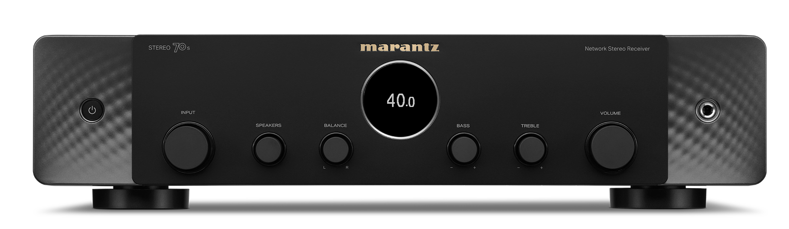 Marantz Stereo 70s — стереоресивер предназначен для тех меломанов, кто хотел бы иметь дома универсальную систему для просмотра фильмов и прослушивания музыки, но по тем или иным причинам не хотел бы приобретать традиционный AV-ресивер. Marantz Stereo 70s выполнен в корпусе, который в два раза ниже, чем у AV-устройств, что упрощает его размещение в домашней системе. В то же время аппарат имеет узнаваемый новый промышленный дизайн от компании Marantz, а его конструкция отличается высокой надежностью.