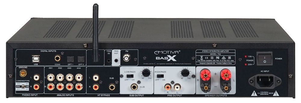 Секция предварительного усиления TA2 включает стереофонический FM-тюнер, линейные входы для подключения источников аналогового сигнала, встроенный ЦАП с широким выбором цифровых входов, включая асинхронный USB высокого разрешения и встроенный Bluetooth-приемник с поддержкой AptX HD, а также высококачественный фонокорректор, поддерживающий картриджи с подвижным магнитом (ММ) и подвижной катушкой (МС). Секция усиления оснащена тороидальным трансформатором и выходным усилительным каскадом класса A/B аудиофильского качества, который обеспечивает достаточно высокую мощность, чтобы вывести любую акустику на оптимальный уровень звукового давления.