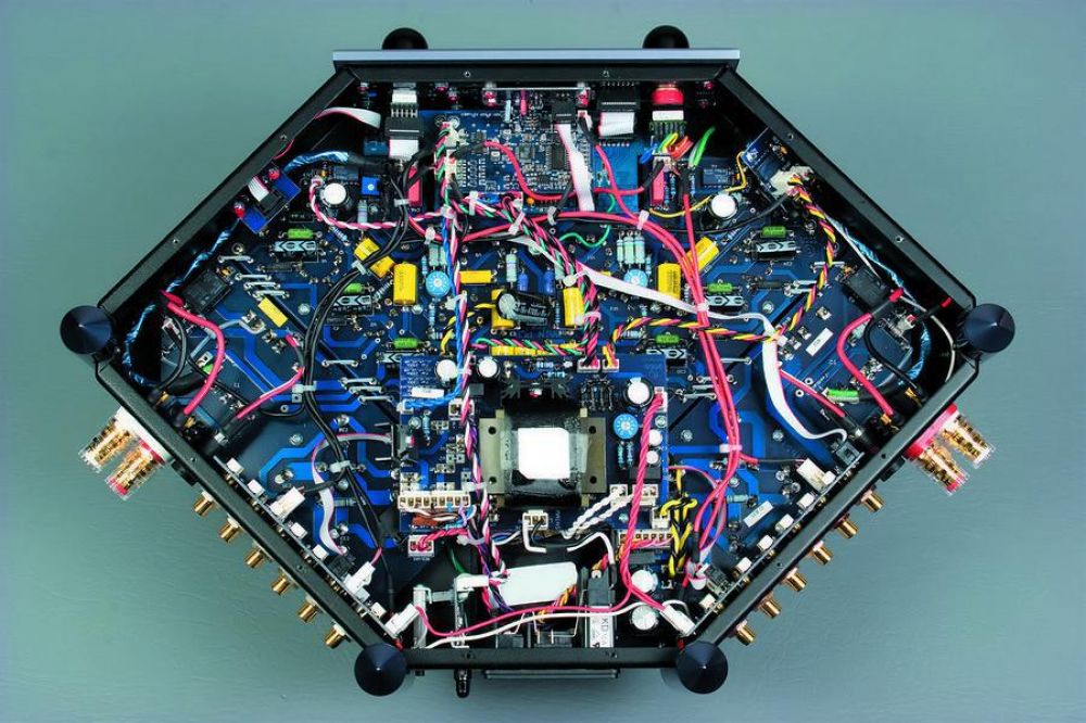 Коммутатор входов выполнен на герметизированных реле, как и регулятор громкости – дискретная резистивная матрица с реле, управляемыми от поворотного кодера.