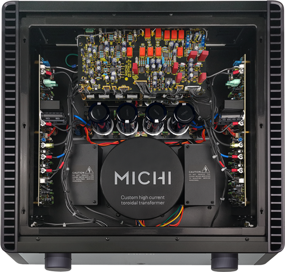 Michi X3 Series 2 создан как для любителей музыки, так и для аудиофилов, при этом каждый аспект его конструкции, дизайна и производства тщательно продуман для обеспечения исключительно высокого качества звука. Крупногабаритный тороидальный силовой трансформатор собственного производства питает изолированные цифровые, аналоговые и сильнотоковые схемы, что еще больше снижает электрический шум и помехи.
