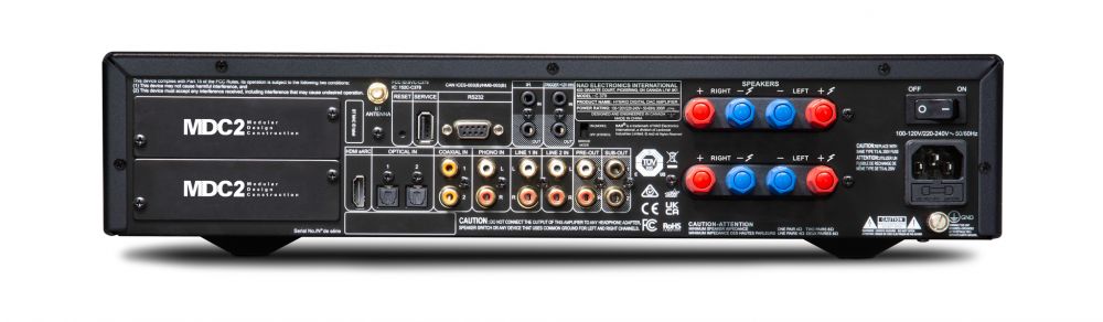NAD C379 оснащен двумя слотами для установки дополнительных модулей, благодаря которым его возможности могут быть расширены. В частности, модуль BluOS-D добавит усилителю стриминговый функционал и систему калибровки звучания Dirac Live.