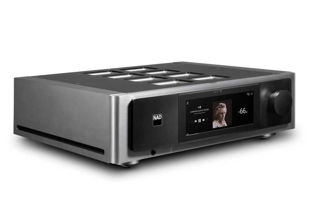 NAD M33 - это ЦАП, усилитель и стример в одном корпусе, он стал первой моделью на базе усилительной схемы Eigentakt от Purifi Audio. Модель заняла место флагманского устройства в актуальной линейке NAD. Компания позиционирует новинку как «ультрапроизводительный усилитель» для дома.