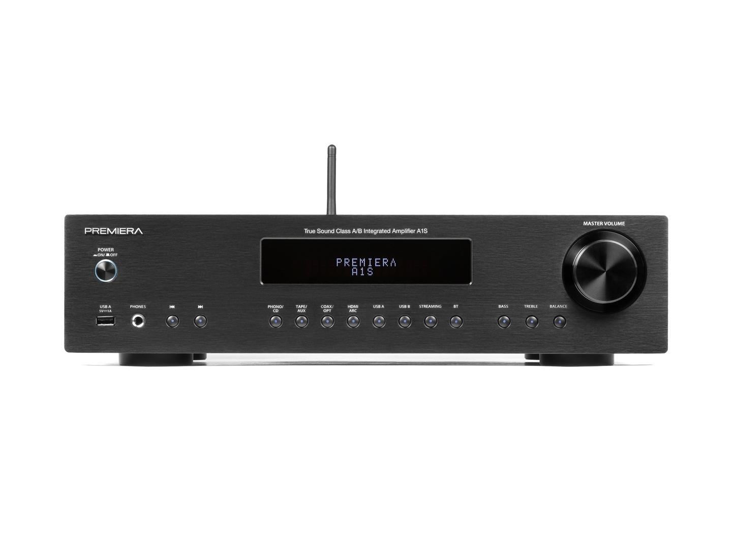 Premiera A1S - современный интегральный Hi-Fi стереоусилитель класса AB со встроенными сетевым проигрывателем, MM-фонокорректором, ЦАП, Bluetooth, HDMI ARC, Wi-Fi и AirPlay 2, с номинальной выходной мощностью 51 Вт на канал.