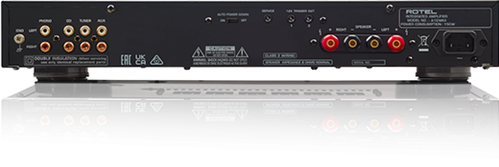 Персональное прослушивание доступно с помощью наушников и разъема 3,5 мм на передней панели, а для акустических систем имеются винтовые клеммы на задней панели. Там же расположены два 12-В триггерных выхода и переключатель автоматического отключения питания, когда усилитель не используется.