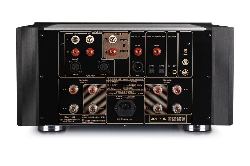 TONE WINNER AD-3PRO Plus - интегральный усилитель. 2 х 165 Вт на 8 Ом. Выбор режима: А. АВ. Авто. B46 Цифровые входы — Toslink (2), Coax (1), USB. Фонокорректор ММ / МС. ЦАП ESS 9038 (PCM до 768 кГц, DSD 512). Вход триггера. Выход для сабвуфера. Размеры (Ш х В х Г), мм: 444 x 226 x 460 мм. Вес - 30.5 кг.
