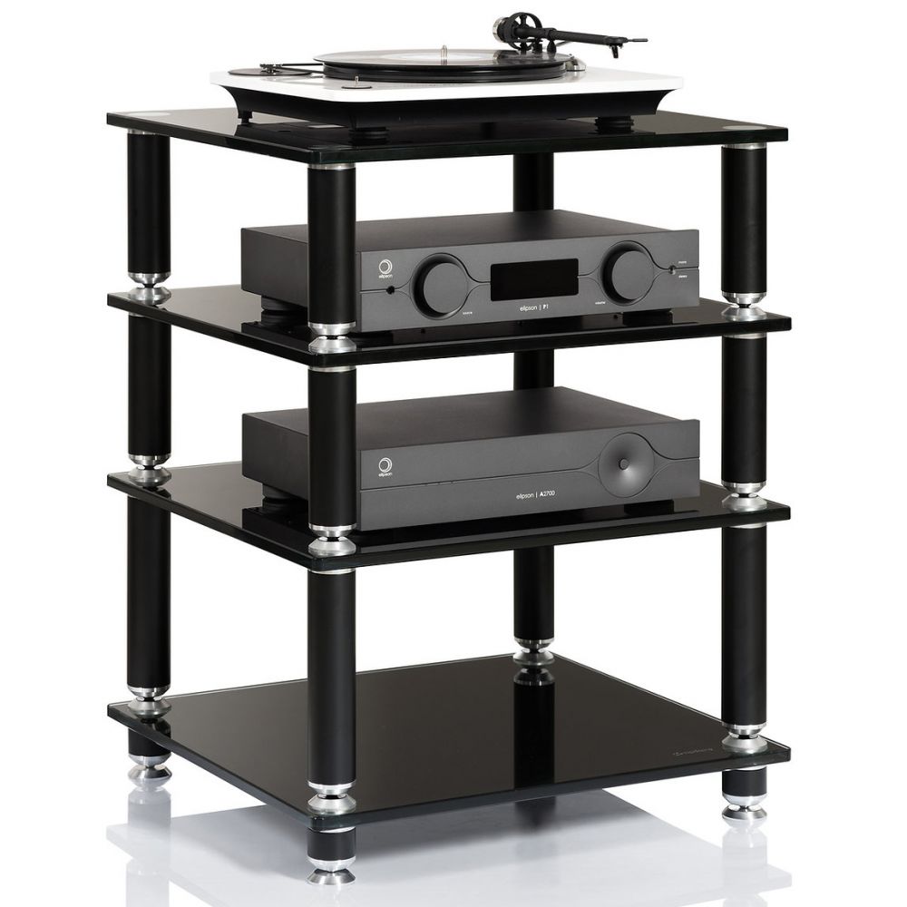 Черные стеклянные полки будут адаптироваться к любому стилю. Модули для хранения оснащены просторными размерами, чтобы вместить все элементы Вашей Hi-Fi системы или аудио-видео компонентов системы домашнего кинотеатра, в том числе самые тяжелые и громоздкие компоненты. Стойка Stabbl HiFi с безупречным качеством производства и дизайном высокого класса удовлетворит самые взыскательные вкусы.