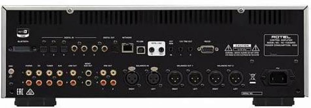 Двойной комплект выходных соединений RCA и XLR обеспечивают максимальную гибкость, включая аудио системы с би-ампингом (двойным усилением). Имеется также выход на сабвуфер.