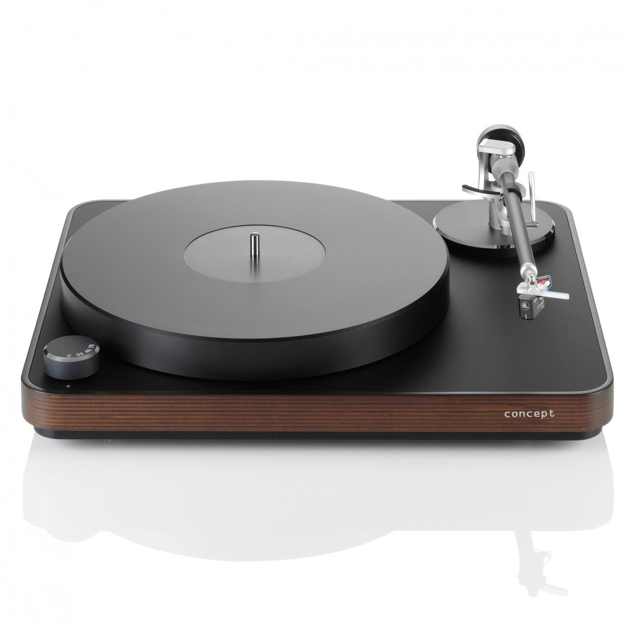 Укомплектованный, собранный и настроенный на заводе проигрыватель. Готов к работе. Тонарм Concept, головка Concept МС. Исполнение: верхняя накладка - черный, торец - натуральное дерево (стол - фанера)